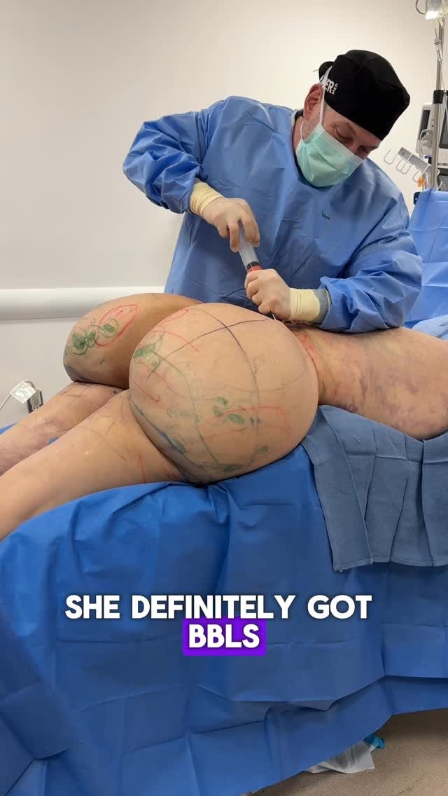 In Dr. Emer’s first post, he introduces us to his patient and tells us that she’s had multiple BBLs and that she generally loves the look of her body, but wants to “fine-tune” her shape to address asymmetries, cellulite, textural irregularities, an umbilical hernia, and unwanted abdominal fat. “We’re not reducing the buttocks,” he notes, “because that’s not what she wants.”